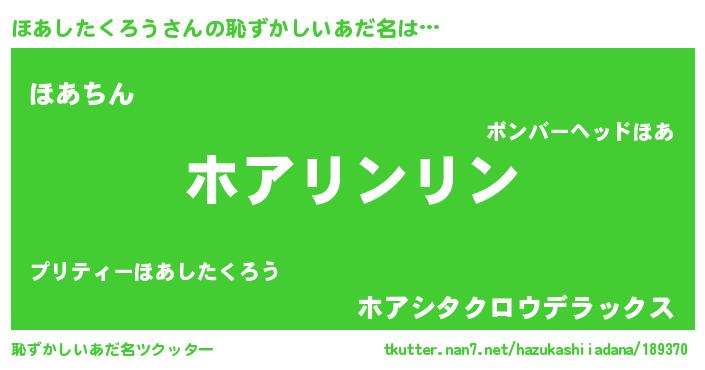 | ヘコむあだ名 | 『ほあお』『ほあしたくろう(震え声)』 |