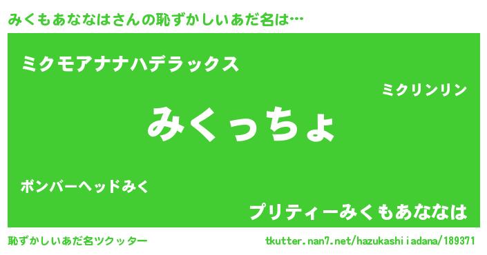 | ファンタジー風あだ名 | 『エターナルミクモアナナハー』 |