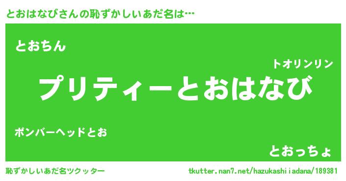| 胡散臭い通販商品みたいなあだ名 | 『億万長者になれるブレスレット…その名も「とおはなび」』 |