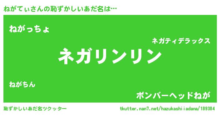 | ヘコむあだ名 | 『ねがぷりん』『つくし』 |