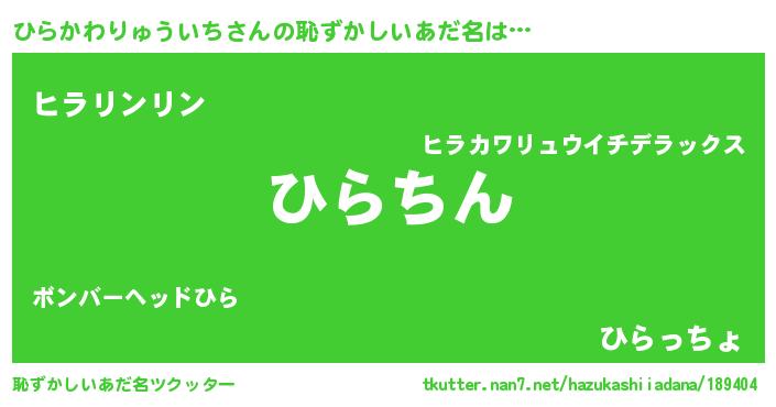 | ヘコむあだ名 | 『ひらかわりゅういち(苦笑)』『ひらっちょ』 |