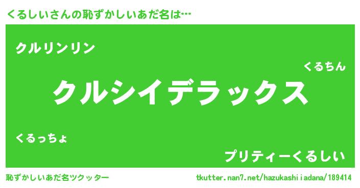 | ヒーロー風カッコイイあだ名 | 『最強戦士クルシイ』『暗黒騎士クル』 |