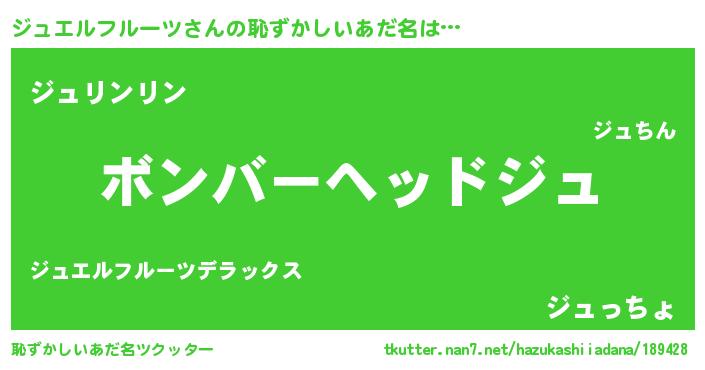 | 男性向けラノベタイトル風あだ名 | 『ジュエルフルーツスレイヤー』 |