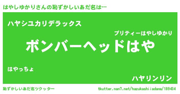 | ヒーロー風カッコイイあだ名 | 『慈愛の使者はやしゆかり』 |