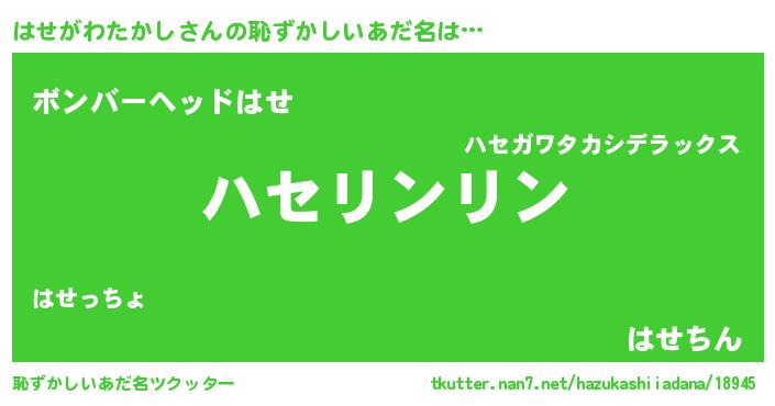 | ヘコむあだ名 | 『はせっぺ』『はせがわたかし(爆)』 |
