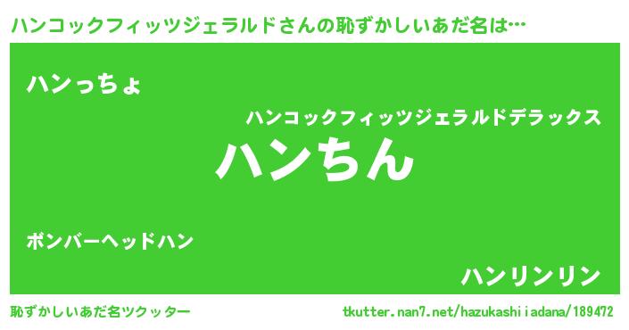 | 意味不明あだ名 | 『永久保存ハンコックフィッツジェラルド』 |