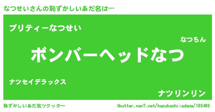 | ヘコむあだ名 | 『なつもー』『なつ太郎』『なまこ酢』 |