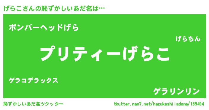 | 欧米人風あだ名 | 『ダレノガレげらこ』『マイケルげらこ』 |