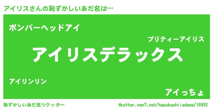 | ヒーロー風カッコイイあだ名 | 『サイバー戦士アイリス』『仮面アイダー』 |