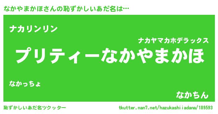 | 男性向けラノベタイトル風あだ名 | 『ナカヤマカホスレイヤー』 |