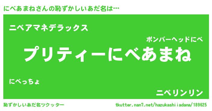 | 意味不明あだ名 | 『ペロリンにべあまね』『自称にべあまね』 |