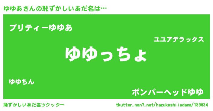 | 意味不明あだ名 | 『ゆゆあフォーエバー』『ペロリンゆゆあ』 |
