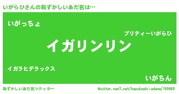 | 意味不明あだ名 | 『とにかく怪しいいがらひ』 |