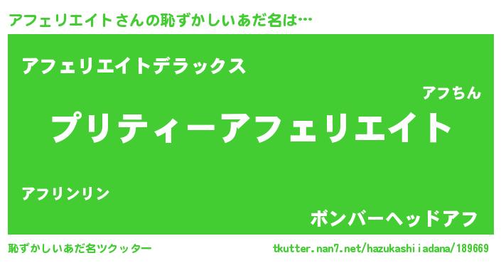 | ヘコむあだ名 | 『アフにー』『アフェリエイト(遠い目)』 |