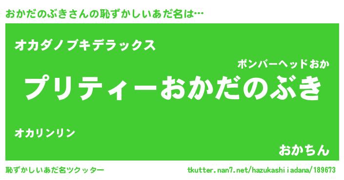 | 男性向けラノベタイトル風あだ名 | 『おかだのぶきの憂鬱』 |