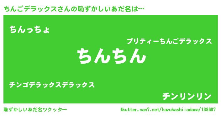 | 胡散臭い通販商品みたいなあだ名 | 『来世でも幸せになれる健康食品…その名も「ちんごデラックス」』 |