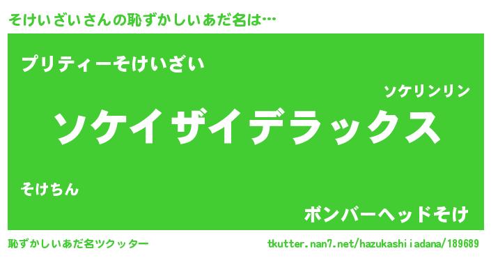 | 男性向けラノベタイトル風あだ名 | 『Re:そけいざいから始める異世界生活』 |