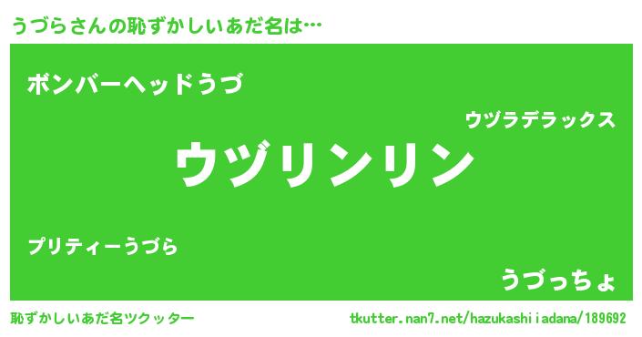 | 女子向けラノベタイトル風あだ名 | 『うづら様がみてる』『死神うづらの再婚』 |