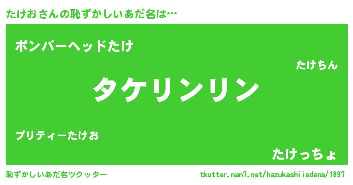| 男性向けラノベタイトル風あだ名 | 『たけおの嫁は女の子じゃないと思った?』 |