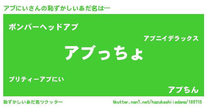 | 肩書あだ名 | 『アブにい総理大臣』『アブにい大佐』 |