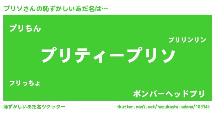 | 意味不明あだ名 | 『住所不定無職プリソ(2歳)』 |