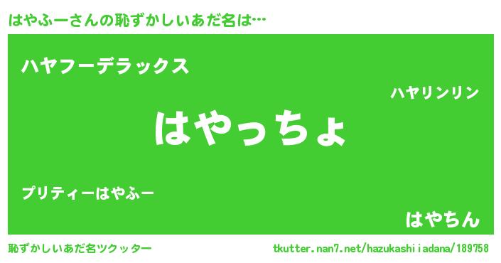 | 意味不明あだ名 | 『ヨモギ科はやふー属』『自称はやふー』 |