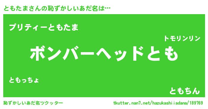 | ヘコむあだ名 | 『ともっふぃ~』『ともたま(小並感)』 |