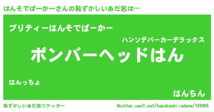 | ヘコむあだ名 | 『はんっふぃ~』『はんそでぱーかー(笑)』 |
