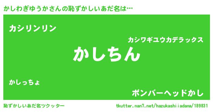 | 可愛いあだ名 | 『かしわぎゆうかママ』『かっしぃー』 |