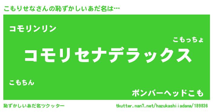 | 意味不明あだ名 | 『自称こもりせな』 |