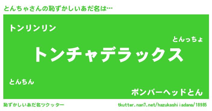 | ヒーロー風カッコイイあだ名 | 『究極戦士トンチャ』『炎刃騎士トン』 |
