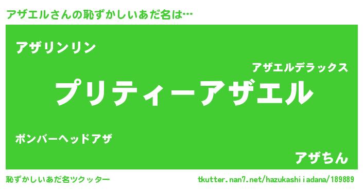| 意味不明あだ名 | 『ペロリンアザエル』『永久保存アザエル』 |