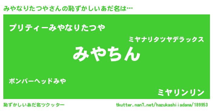 | 意味不明あだ名 | 『永久保存みやなりたつや』 |