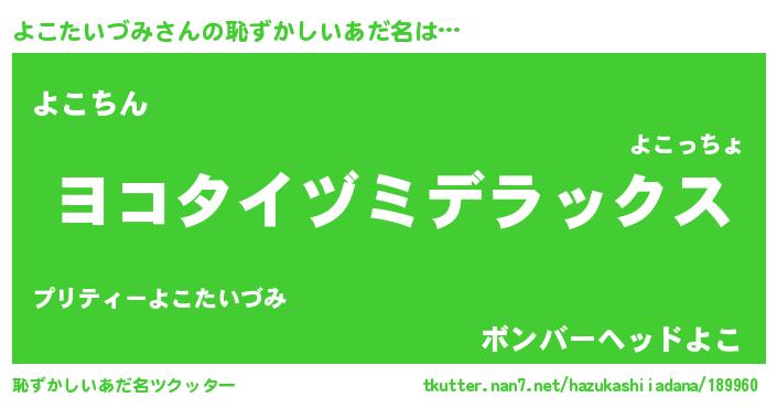 | 意味不明あだ名 | 『自称よこたいづみ』 |