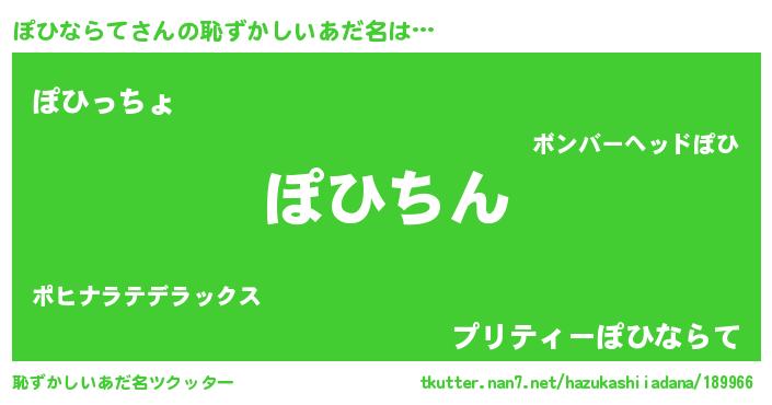 | ヘコむあだ名 | 『ぽひならて(笑)』『牛乳』『ぽひを』 |
