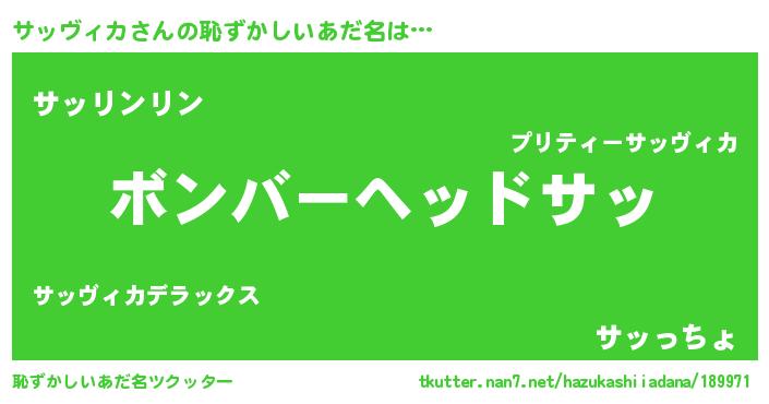 | 意味不明あだ名 | 『住所不定無職サッヴィカ(40歳)』 |