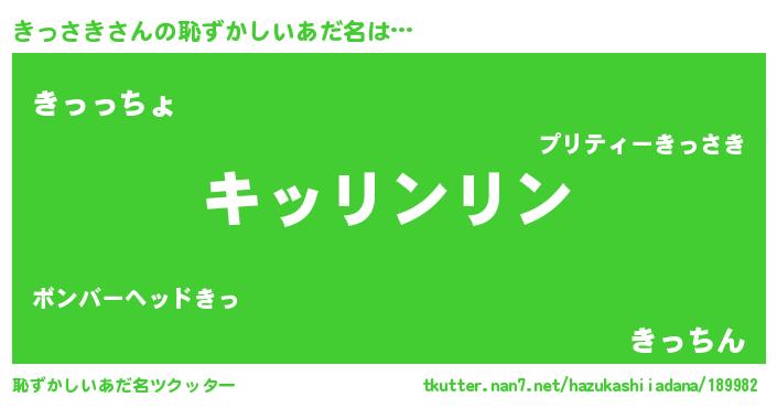 | ヒーロー風カッコイイあだ名 | 『幻影騎士キッ』『ウルトラきっさきマン』 |