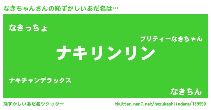 | 男性向けラノベタイトル風あだ名 | 『なきちゃんの嫁は女の子じゃないと思った?』 |