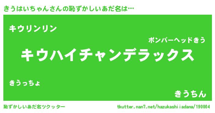 | ヒーロー風カッコイイあだ名 | 『サイバー戦士キウハイチャン』 |