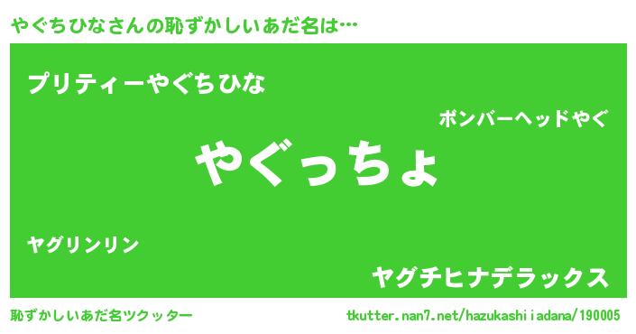 | 意味不明あだ名 | 『たけのこ科やぐちひな属』 |