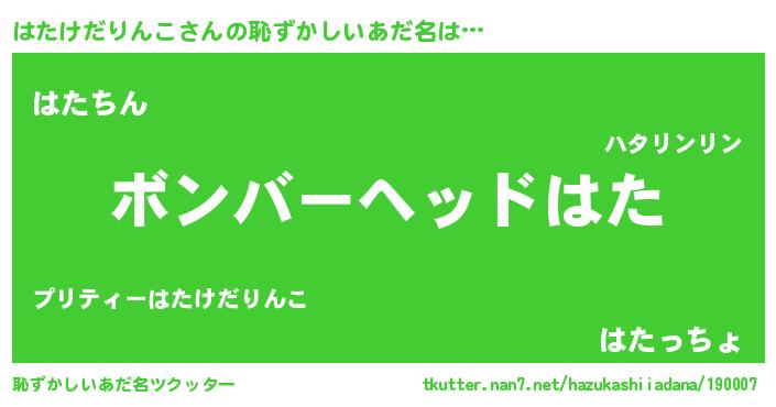 | ヒーロー風カッコイイあだ名 | 『正義の使者はたけだりんこ』 |