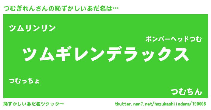 | 意味不明あだ名 | 『自称つむぎれん』『永久保存つむぎれん』 |