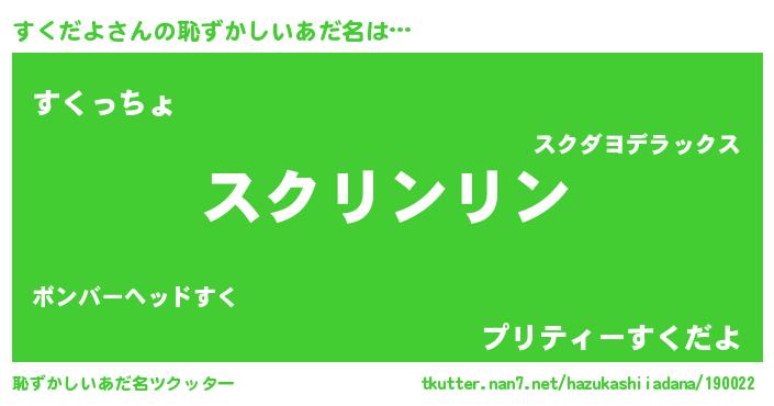 | 男性向けラノベタイトル風あだ名 | 『転生したらすくだよだった件』 |