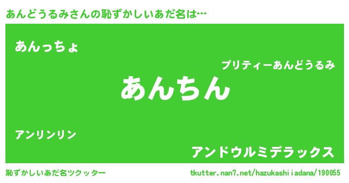 | ヘコむあだ名 | 『あんどうるみ(小並感)』『豆乳』 |