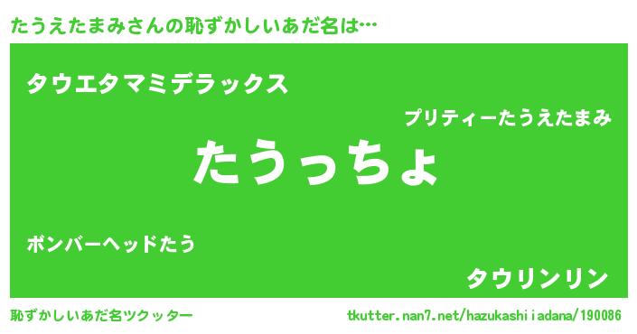 | ヒーロー風カッコイイあだ名 | 『仮面タウダー』『究極戦士タウエタマミ』 |