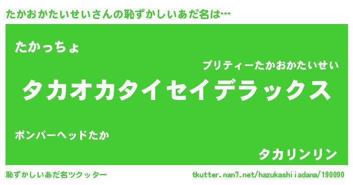 | 意味不明あだ名 | 『自称たかおかたいせい』 |
