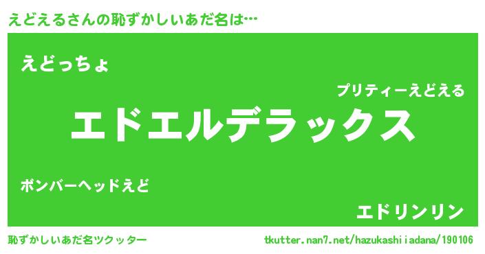 | 意味不明あだ名 | 『自称えどえる』『えどえるフォーエバー』 |