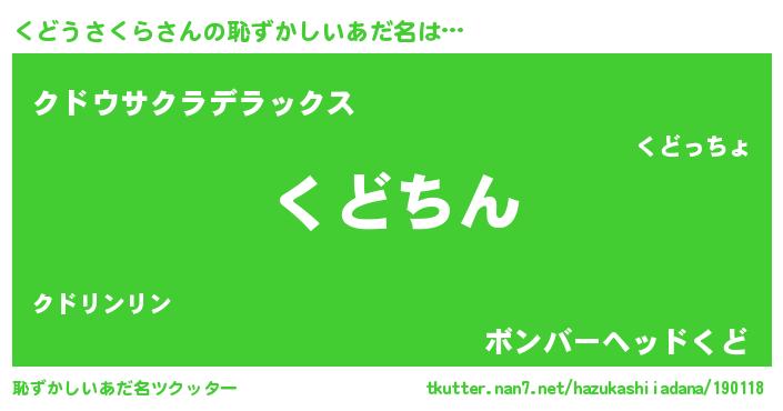 | ヒーロー風カッコイイあだ名 | 『ネオクドウサクラ』『仮面クドダー』 |