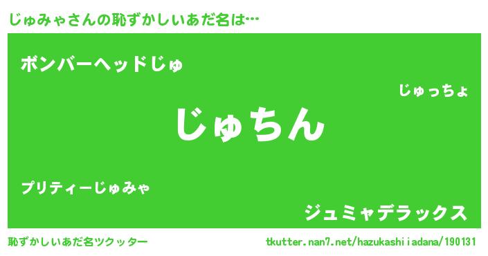| 意味不明あだ名 | 『永久保存じゅみゃ』『自称じゅみゃ』 |