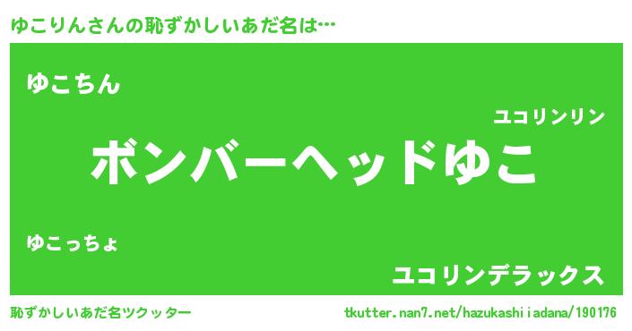 | ヘコむあだ名 | 『ゆこりん(爆)』『ゆこお』 |
